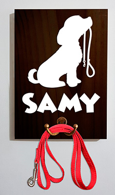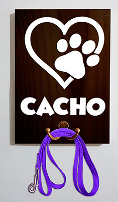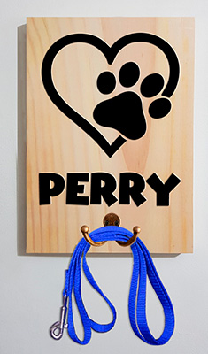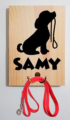 El perchero está fabricado en madera, cuenta con 3 diseños diferentes y el nombre de tu mascota, los cuales están cortados con la técnica de calado, este perchero personalizado para correas es una garantía de que le dará un toque de originalidad a tu hogar.