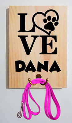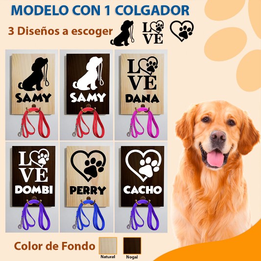 Este perchero para correas, fabricado en madera y personalizado con el nombre de tu mascota, es la mejor manera de tener organizadas las correas de tus perros, tanto si tienes una mascota como si habitan varias contigo en casa. Contamos con 2 opciones, una con un colgador y la otra con dos colgadores, en los cuales caben varias correas en cada colgador si así lo necesitas, y puedes elegir 2 opciones para el color de fondo del perchero ya sea natural o en acabado nogal.